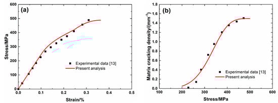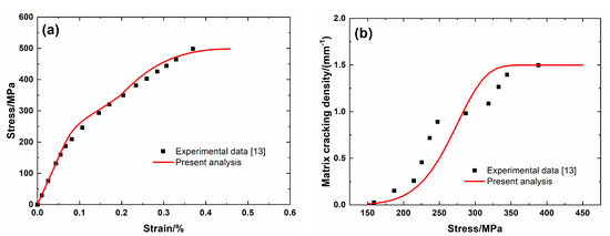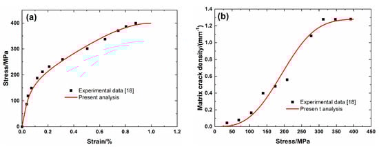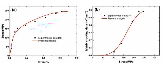 In Domain I, no damages occur in mini-CMCs, and the linear relationship between applied stress σ and composite stress–strain εc can be determined by Equation (1) [4].