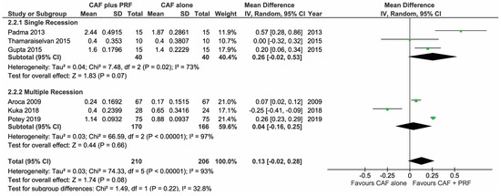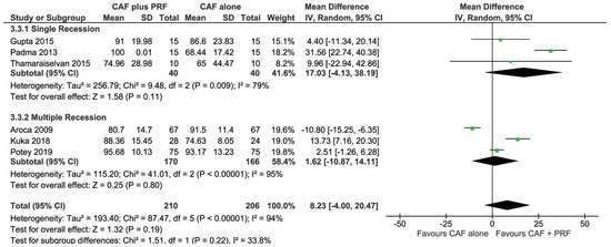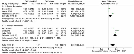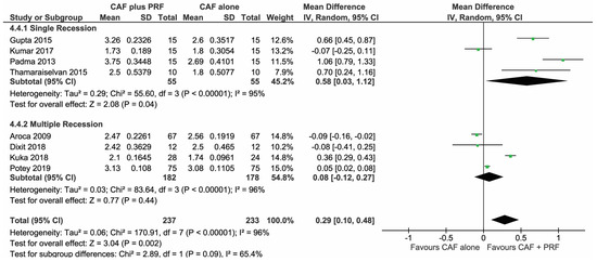 Panda, S.; Satpathy, A.; Chandra Das, A.; Kumar, M.; Mishra, L.; Gupta, S.; Srivastava, G.; Lukomska-Szymanska, M.; Taschieri, S.; Del Fabbro, M. Additive Effect of Platelet Rich Fibrin with Coronally Advanced Flap Procedure in Root Coverage of Miller’s Class I and II Recession Defects—A PRISMA Compliant Systematic Review and Meta-Analysis. Materials 2020, 13, 4314. https://doi.org/10.3390/ma13194314