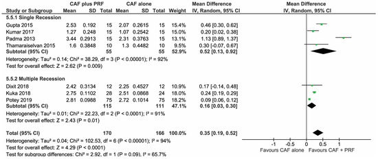 Additive Effect of Platelet Rich Fibrin with Coronally Advanced Flap Procedure in Root Coverage of Miller’s Class I and II Recession Defects—A PRISMA Compliant Systematic Review and Meta-Analysis