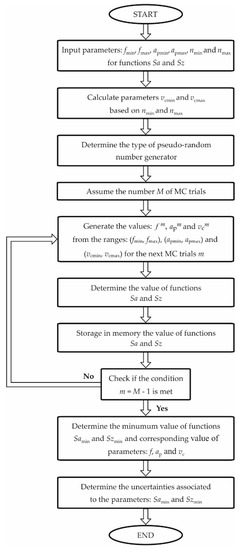 Figure 1 shows a block diagram of the applied MC method for determining the optimal (minimum) values of the factors (functions) and .