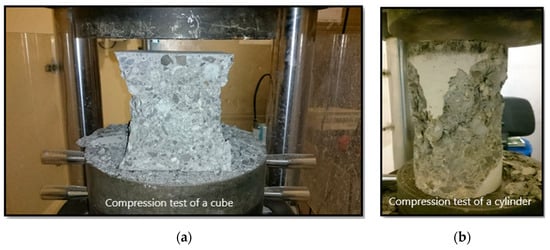 Failure modes of concrete cube and concrete cylinders failure: (a) Concrete cube failure mode; (b) Concrete cylinder failure mode.
