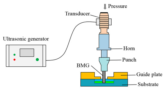 - Ma, J.; Liang, X.; Wu, X.; Liu, Z.; Gong, F. Sub-second thermoplastic forming of bulk metallic glasses by ultrasonic beating. Sci. Rep. 2015, 5, 17844. [Google Scholar] [CrossRef] [PubMed]