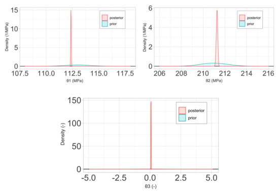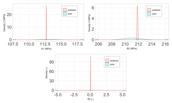 To complete the problem definition, it remains to choose prior probability distributions for the complete set of material parameters , the variance of the global observation error , and the hyperparameters of the discrepancy function. Table 1 and Table 2 describe the probability distributions chosen for each parameter in the three models and the references employed for their choice.