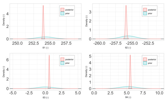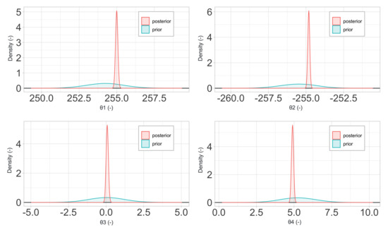Here, and refer to the expectation and variance, respectively. Finally, in order to obtain the segregated posterior probability density of the parameters , we should integrate out and ; but, due to the high computational cost involved, this is typically done using Monte Carlo methods [29]. Details of this process fall outside the scope of the present work and can be found in standard references [12].