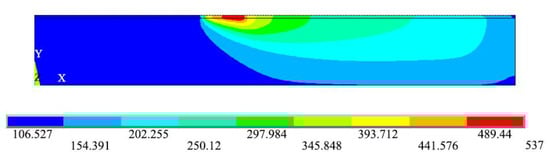 Table 3 shows the relevant boundary conditions of the two-dimensional heat transfer model in the thermoplastic fiber placement process. The diameter and heating length of the pressure roller were determined by the design size of the placement equipment. The temperature of the pressure roller and the initial temperature of the mold were set to 80 °C and 150 °C, respectively, to increase the initial substrate temperature of the laminate, which was beneficial for the first layers of the thermoplastic fibers in the initial placement process to absorb more heat from the heat source and improve the fusion efficiency between the layers.