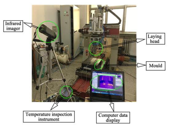 It was essential to embed the thermocouple into the substrate to record internal temperature field variation during the placement process. Considering that the rate of temperature change within the thermoplastic fiber could reach values of 1000 °C/s, high-resolution thermocouples were chosen. In this paper, a fine metal wire type K thermocouple (nickel chromium, temperature range: 0–1200 °C, the measurement accuracy: ±2.5 °C) was embedded between each layer of laminate, which adopted an alternative arrangement to prevent an increase in the local thickness of laminates. Figure 11 shows the thermocouple layout. The temperature value of the substrate was processed by the temperature inspection instrument (model: STI-AS-DC-C40, measurement accuracy: 0.2%); then, the computer displayed its change process and stored relative data for subsequent processing.