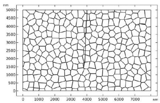 In this study, the material properties are assumed to be homogeneous and isotropic to simplify the analysis. The material properties and the values of the other parameters in the PF model are listed in Table 1 and Table 2, respectively. The PF model is implemented with COMSOL Multiphysics. The FE mesh is carefully refined so that there are 3–4 layers of elements across the GBs. The convergence requirement of the mesh size is checked in the numerical studies.