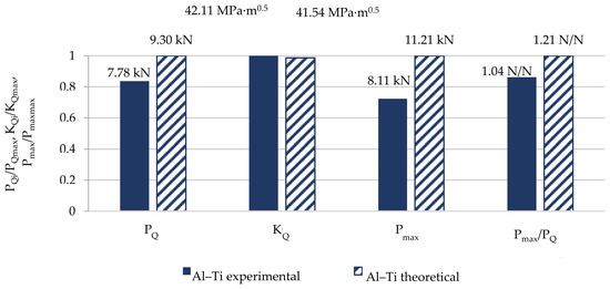 This was one of the reasons why the maximal experimental value of the stress intensity factor KQ was assumed to be a comparative quantity, regardless of whether it meets the conditions that qualify it to be a critical value. The diagrams so achieved for the considered Al–Ti are presented in Figure 9 and the test results are presented in Table 5.
