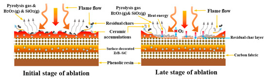 Xu, F.; Zhu, S.; Hu, J.; Ma, Z.; Liu, Y. Ablation Behavior of a Carbon Fabric Reinforced Phenolic Composite Modified by Surface-Decorated ZrB2/SiC. Materials 2020, 13, 256. https://doi.org/10.3390/ma13020256