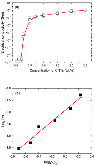 (a) Electrical conductivity and (b) curve fitting of CNT/epoxy composites.