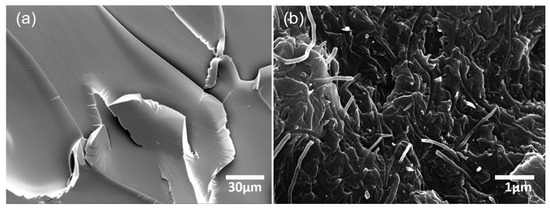 Scanning electron microscope (SEM) images of (a) pristine epoxy and (b) CNT/epoxy composite (2.0 wt %).