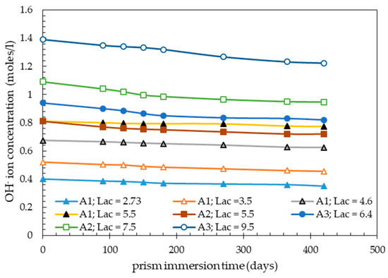 − ion concentration of 0.81 moles/L) is required to simulate the initial pore liquid composition of the concrete prisms made with Lac = 5.5 kg Na