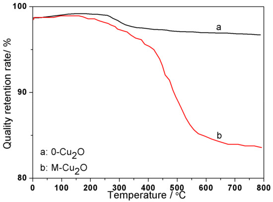 Thermogravimetric Analysis (TGA) of 0-Cu2O and M-Cu2O. (a) 0-Cu2O; (b) M-Cu2O.