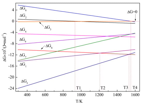 The Gibbs free energy changes curves of the reaction in the Al-5Ti-0.62C system.