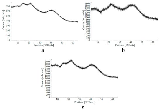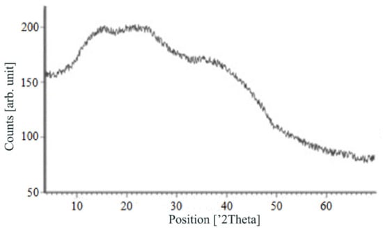 Figure 7, Figure 8, Figure 9 and Figure 10 show the results of X-ray analysis (diffraction patterns) for the previously obtained pristine alginate-based aerogel particles and drug-loaded alginate-based aerogel particles with different amounts of a certain active substance.
