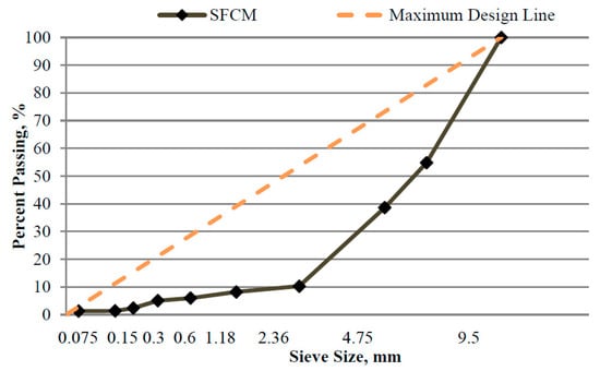 This study used PG64-22 binder with 0.1% of anti-stripping agent (by weight of asphalt binder). Optimum asphalt content (OAC) was calculated based on an empirical equation suggested by Roffee [18], as shown in Equation (1),