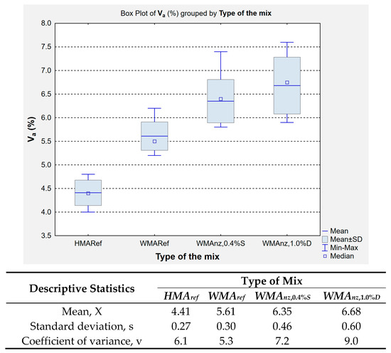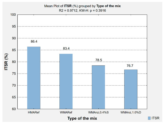 - the amount and mode of dosing of the natural zeolites (WMAnz,0.4%S, WMAnz,1.0%D) had no significant impact on the tested properties (Va, ITSdry, ITSfreeze-thaw, ITSR) of Marshall compacted samples of the AC 16 foamed warm mix asphalt concrete; the difference in the ITSdry between the WMAnz,0.4%S and WMAnz,1.0%D asphalt mixtures amounted to 14 kPa, and for ITSfreeze-thaw it amounted to 28.5 kPa, which was also a minor difference;