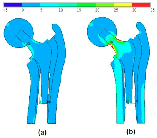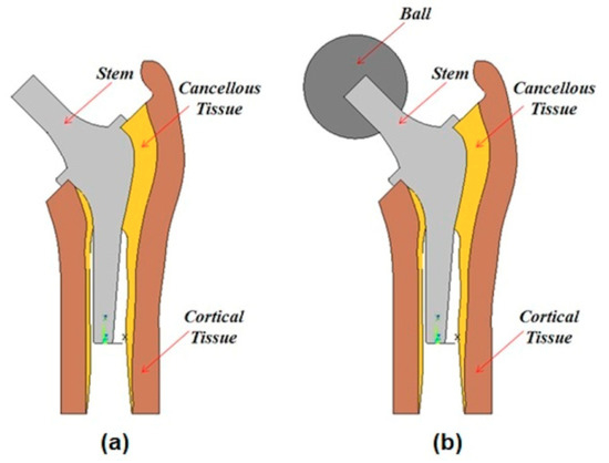 Hip arthroplasty is an innovative subject in orthopedic surgery, as it permits a significant advancement in pain and functional capabilities, in addition to a high patient justification level with the embedded prosthesis. The primary goal of this process is the long-time continuation of the implant while maintaining steady obsession of the parts with negligible wear of the contact surfaces [1]. The introduction of reliability and failure probability concepts can play an important role in this context [2,3]. Cemented and cementless stem implantation results in considerable changes in femoral load transfer, in which the femoral bone responds to these changes with a process known as versatile bone remodeling that is controlled by Wolff’s law [4].