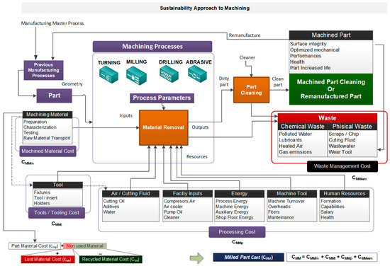 Finally, an important issue is to define the economic impact considering all the activities, inputs, controls, resources, enablers, and outputs. The costs of part manufacturing can be calculated considering the material costs (CM), the cost of tools (CT), the costs of the process (CP), and the costs of waste management (CW).