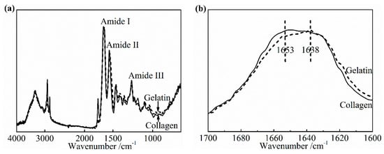 30]. To determine the specific change in the amide I band as the denaturation occurs, an IR spectra of pure collagen film and gelatin film were obtained, as shown in