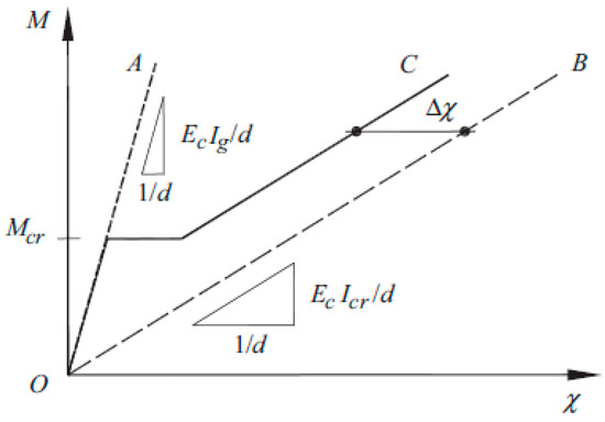 The modification contains the influence of fiber reinforcement on the moment of inertia for the cracked cross-section (Icr) and tension stiffening effect (distance between Lines C and B in Figure 1). The moment of inertia of a rectangular SFRC section can be taken as: