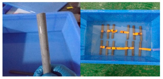 A simulating pore solution of saturated calcium hydroxide and 0.01 mol/L sodium hydroxide was used to simulate the pore fluid of reinforced concrete in Figure 3. In order to accelerate the corrosion rate, 3% sodium chloride was added to the simulated concrete pore solution.