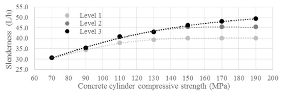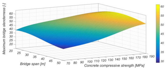 Achievable slenderness of a box girder bridge with an increasing concrete compressive strength.