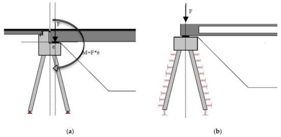 For the foundation, several calculations were performed with the intention of investigating whether it was possible to limit the force in the foundation piles to that similar to the existing bridge. In the FEM calculations, Menard’s spring stiffness’s were applied. Another option for redesigning an existing bridge foundation to increase the design capacity is by replacing a bridge girder concentrically (Figure 14b) on the abutment instead of eccentrically (Figure 14a). This removed the bending moment occurrence as a result of the abutment support reaction. This reduced the compression force in the frontal piles.
