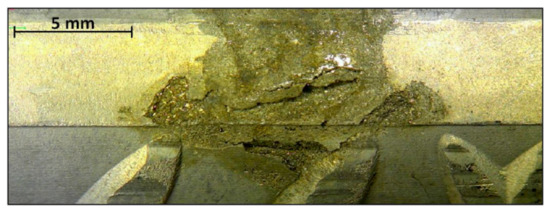 Optical image of the most severe corrosion damage found on a stainless steel reinforcement in concrete column C11 (located in the dry zone).