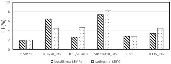 Figure 9 sums up healing test results obtained for each investigated binders in terms of healing index according to Equation (5).
