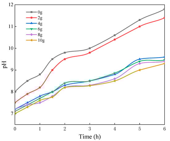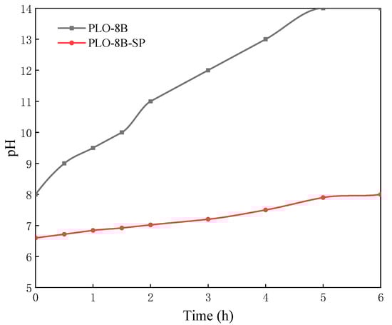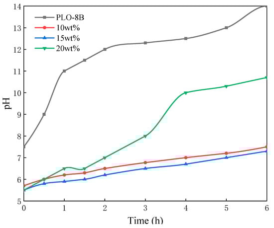 The change of solution pH soaked with PLO-8B luminescent powder coated with different sodium silicate dosages.