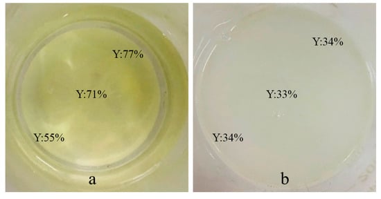 The Y value in hydrolysis solutions of different preparation sequences: (a) Add the silane coupling agent first; (b) Adjust pH first.