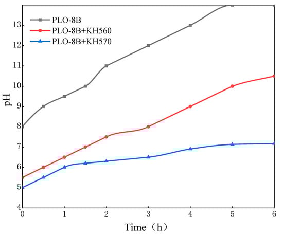 The change of solution pH soaked with PLO-8B luminescent powder coated with different silane coupling agents.