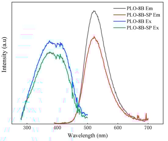 Em and Ex spectra of PLO-8B and PLO-8B-IO.