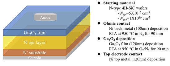 Structure of Ga2O3/4H-SiC heterojunction diode and fabrication flow.