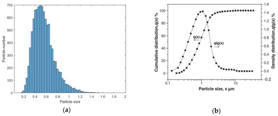 (a) The particle size distribution of model for PZT matrix ferroelectric composites. (b) The particle size distribution of the PZT (piezoelectric ceramic) powder [31].