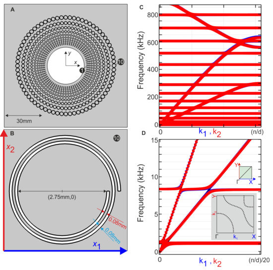 - Zolla, F.; Nicolet, A.; Guenneau, S. Swiss roll lattices: Numerical and asymptotic modeling. Waves Random Complex Media 2007, 17, 571–579. [Google Scholar] [CrossRef]