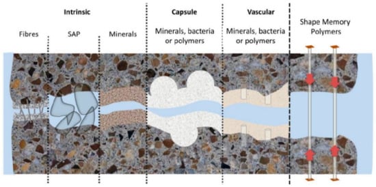 - De Rooij, M.; Van Tittelboom, K.; De Belie, N.; Schlangen, E. (Eds.) Self-Healing Phenomena in Cement-Based Materials: State-of-the-Art Report of RILEM Technical Committee 221-SHC: Self-Healing Phenomena in Cement-Based Materials; Springer Science & Business Media: Berlin/Heidelberg, Germany, 2013; Volume 11. [Google Scholar]