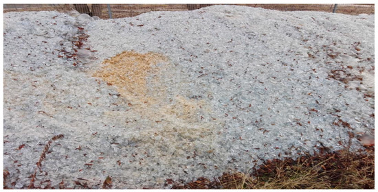 Test trials comprised three mixtures having different contents of glass recyclate (0, 5, and 10%). The original mixture was modified by adding heat resistant cullet to the trial batch, and consequently the amount of water and aggregate has been optimized appropriately to the volume of replaced materials, moisture contents of fine and coarse aggregate and of recyclate. When selecting recycled aggregate for needs of producing the composite material, physical parameters, and ecologic requirements were taken into consideration. Bromosilicate cullet (Figure 1) comes mainly from crushed heat resistant utensils kept in a storage area on the premises of the glass mill in Wołomin (Termisil S.A. Glassworks, Poland).