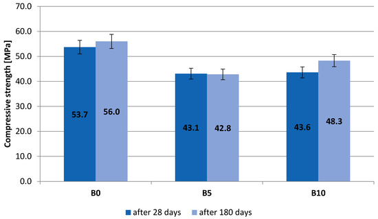Results of testing of compressive strength obtained after 180 days.