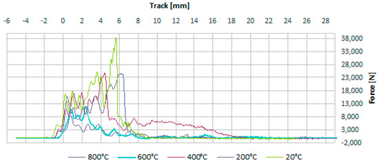 Examples of courses obtained from the implemented impact strength test: force-route.