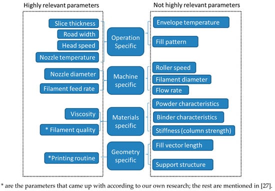 Schematic diagram of parameters that have effects on small PEEK parts made from FDM [].