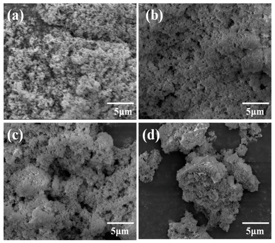 SEM images of MCTO-400 (a), MCTO-500 (b), MCTO-600 (c), and MCTO-700 (d).