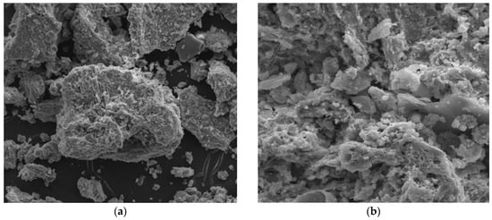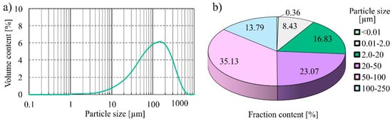 The grain size analysis was based on laser diffraction using a Mastersizer 3000 analyzer (Malvern Instruments, Malvern, Worcestershire, UK). The measurement was carried out in a dispersing liquid (demineralized water) in the presence of an ultrasonic probe in order to break up larger aggregates of the tested samples. Grains with equivalent diameter sizes from 0.1 to 1000 µm were analyzed. The morphology and chemical composition in the micro area of the main components of the tested materials was determined using the SEM Quanta 250 FEG scanning electron microscope (FEI), equipped with a chemical composition analysis system based on X-ray energy dispersion—EDS (Energy Dispersive X - Ray Spectroscopy, EDAX) [28].
