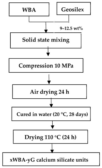 2.3. Preparation of Wood Bottom Ash-GeoSilex Calcium Silicate Units