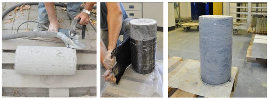 - Meßerer, D.; Käseberg, S.; Weisbrich, M.; Holschemacher, K. Effect of substrate preparation on the load-bearing behaviour of CFRP-confined concrete. Beton- und Stahlbetonbau 2020. (In German) [Google Scholar] [CrossRef]