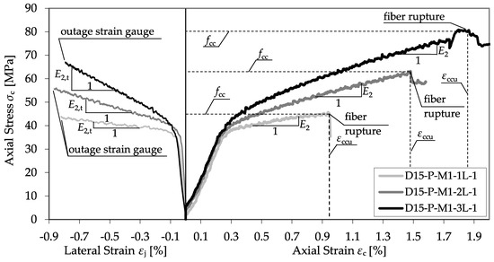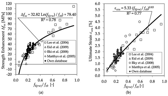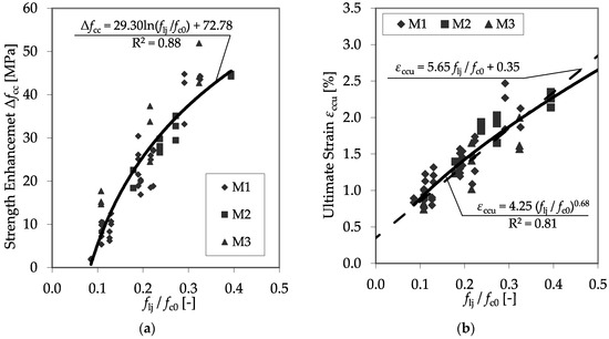 5.1. Ultimate Concrete Strength and Accompanied Axial Strain