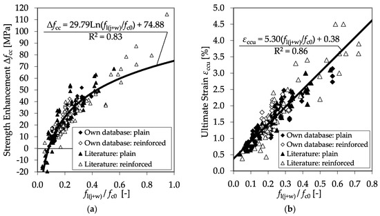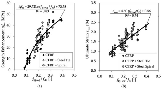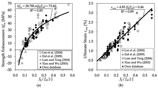 - Lam, L.; Teng, J.G. Ultimate Condition of Fiber Reinforced Polymer-Confined Concrete. J. Compos. Constr. 2004, 8, 539–548. [Google Scholar] [CrossRef]