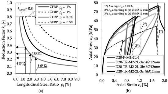 3.5. Impact of the Longitudinal Reinforcement on the CFRP Jacket’s Rupture Strain