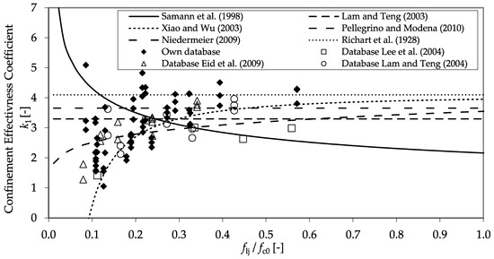 - Richart, F.E.; Brandtzæg, A.; Brown, R.L. A Study of the Failure of Concrete under Combined Compressive Stresses; Engineering Experiment Station, Bulletin No. 185; University of Illinois: Urbana-Champaign, IL, USA, 1928; Available online: http://hdl.handle.net/2142/4277 (accessed on 27 August 2020).